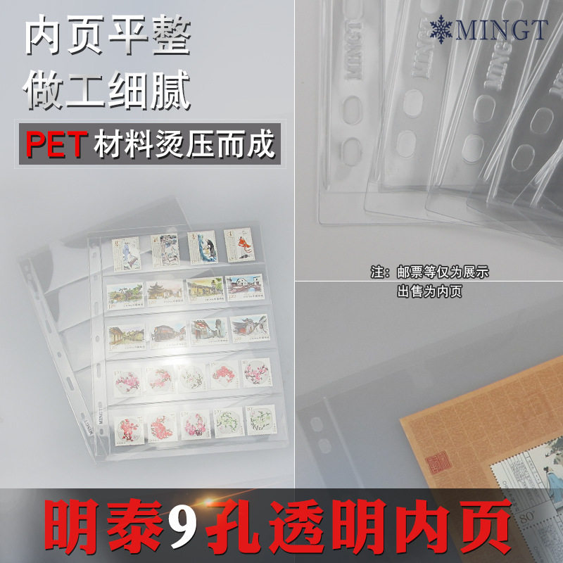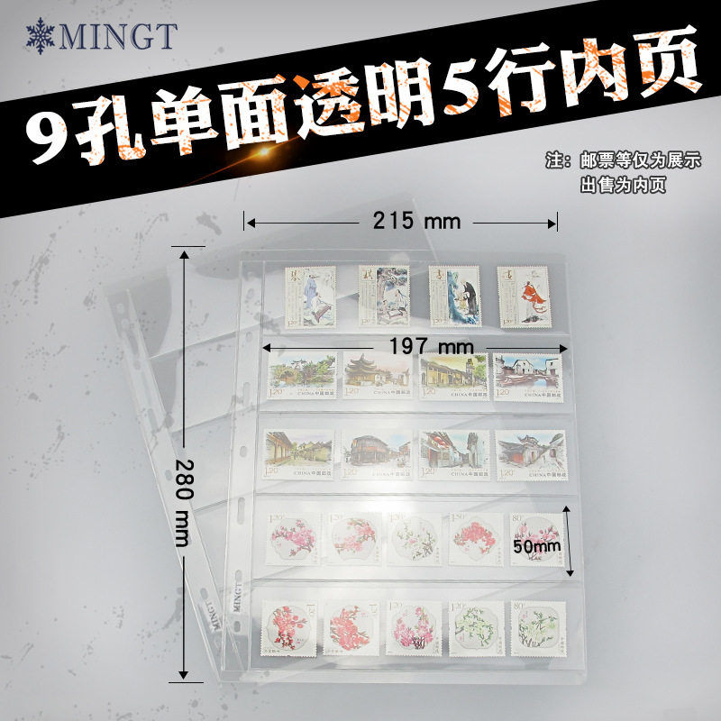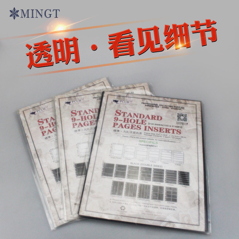 PCCB Nine-hole loose-leaf inner page 9-hole single-sided transparent 5-line food stamp album Philatelic album Collection album Paper coin loose-leaf