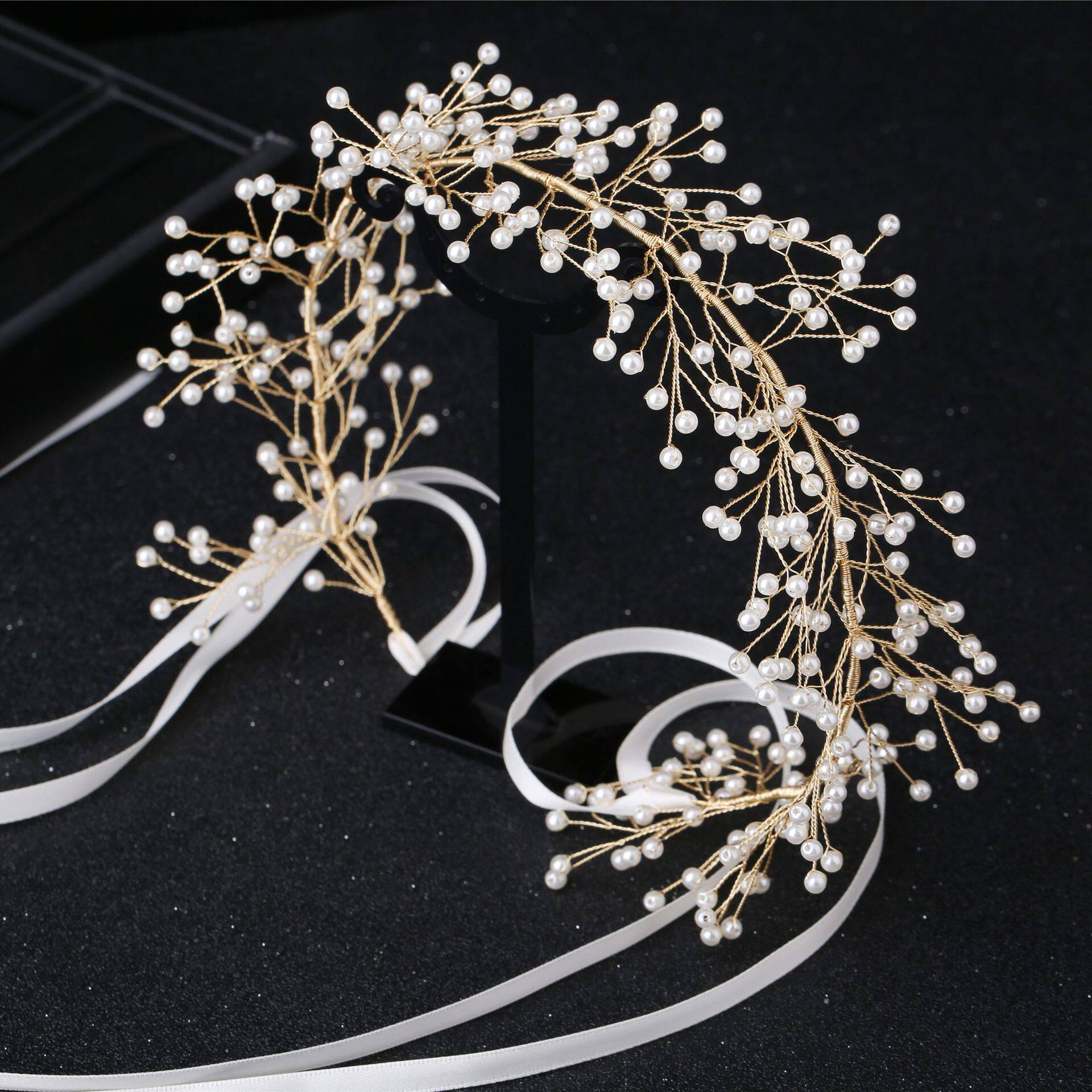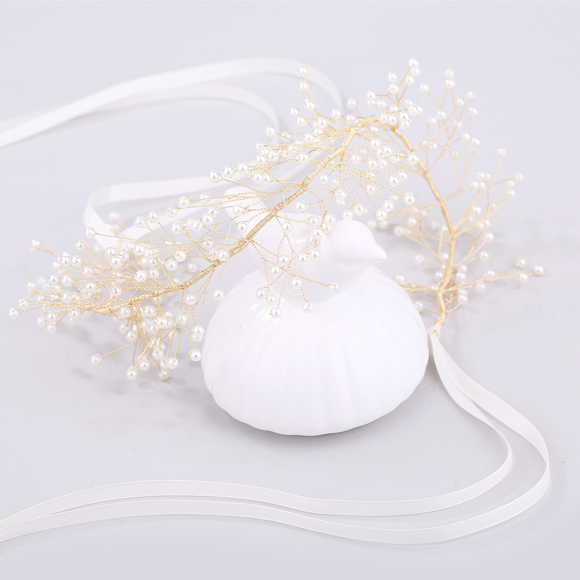 High-end Bridal Head Accessories Crystal Hair Stirrup Hair Band Handmade Pearl Hair Stirrup Accessories Wedding Wedding Wedding Dress Styling Accessories