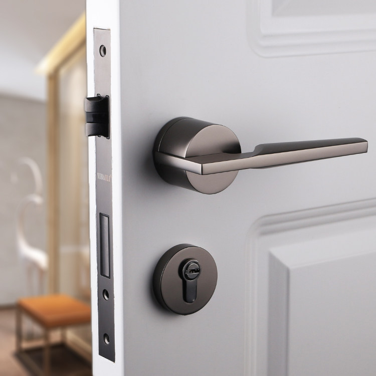 Yibaili gray black door lock simple indoor silent room door lock Japanese bedroom door handle American three-piece lock