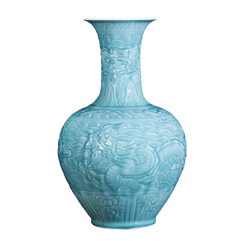 Hand-carved dragon pattern antique shadow blue large vase Jingdezhen ceramics modern home decoration large vase