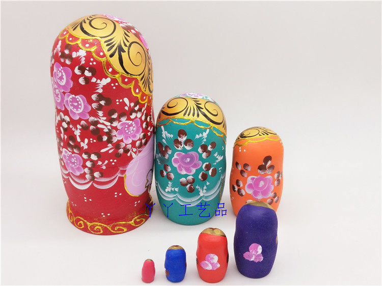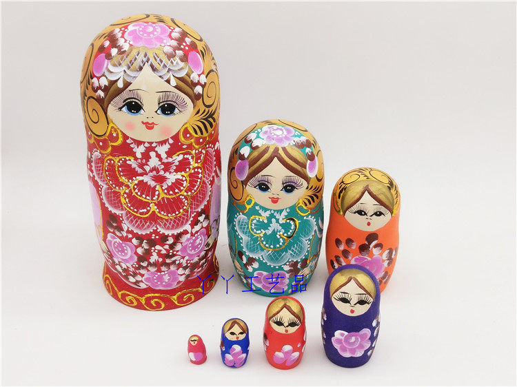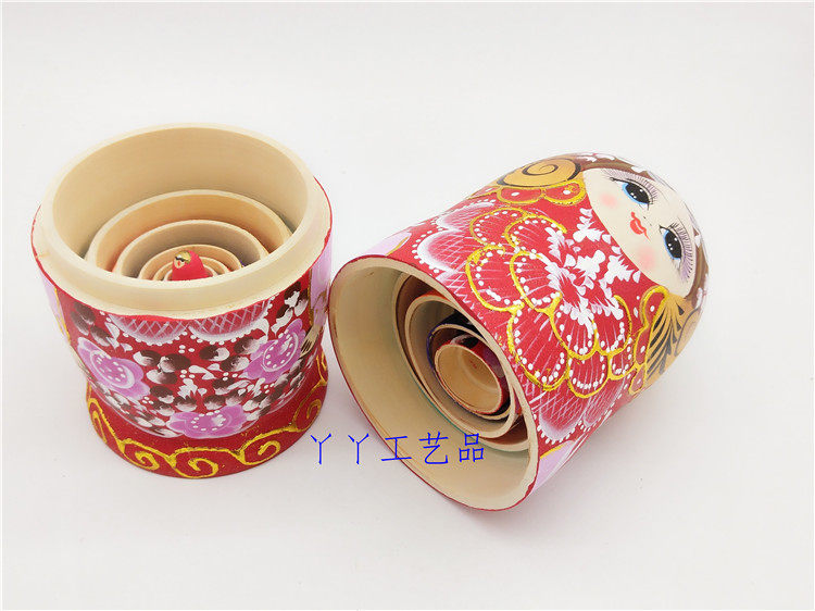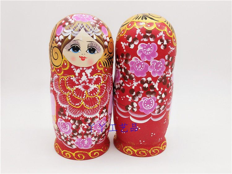 Seven-layer red gold silk Russian nesting doll wooden toy craft gift wishing doll couple birthday gift