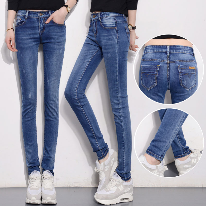 2022 new spring and autumn ladies jeans fall Korean version in waist small feet long pants to be slim and light and femini pants