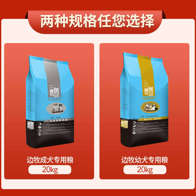 Side animal husbandry dog food 40 kg pack Ubai Su Mu Border shepherd adult puppies special medium-sized dog calcium beef flavor 20kg