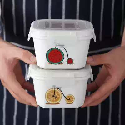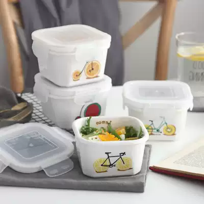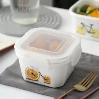 Fruit ceramic heating fresh-keeping bowl with lid Microwave oven lunch box sealed bowl Lunch box Soup bowl Small portable lunch box
