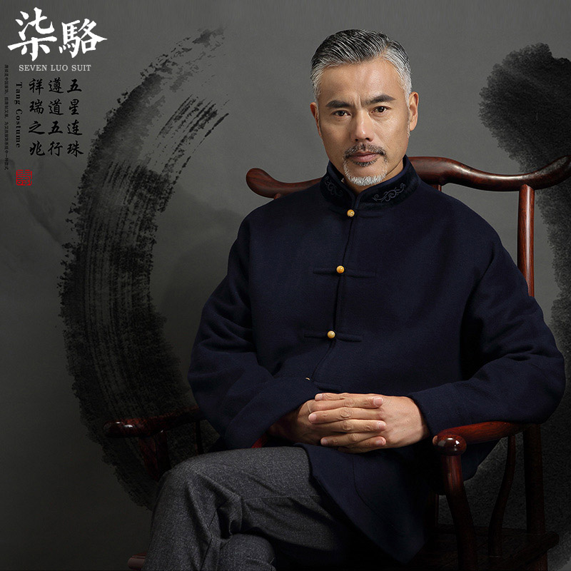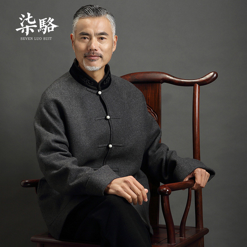 Wool coat Tang suit Male middle-aged coat Grandpa spring and autumn suit Dad Chinese wedding dress Old man clothes