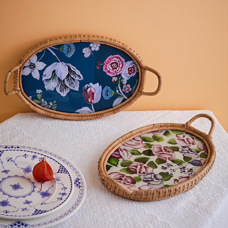 (Orphan) Plant Love Rattan Tray Nordic Handmade Storage Basket Indonesia Imported Tray Household Kitchen Appliances