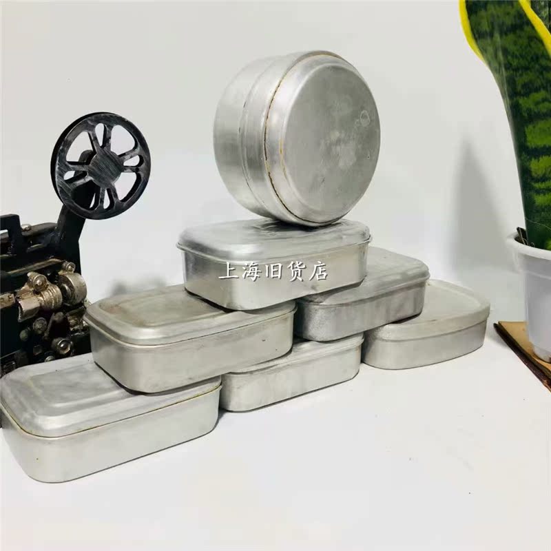 Small size (12 cm vegetable boxes) nostalgic old objects 70 80s ALUMINUM VEGETABLE CASE SILVER CANTEEN BOX