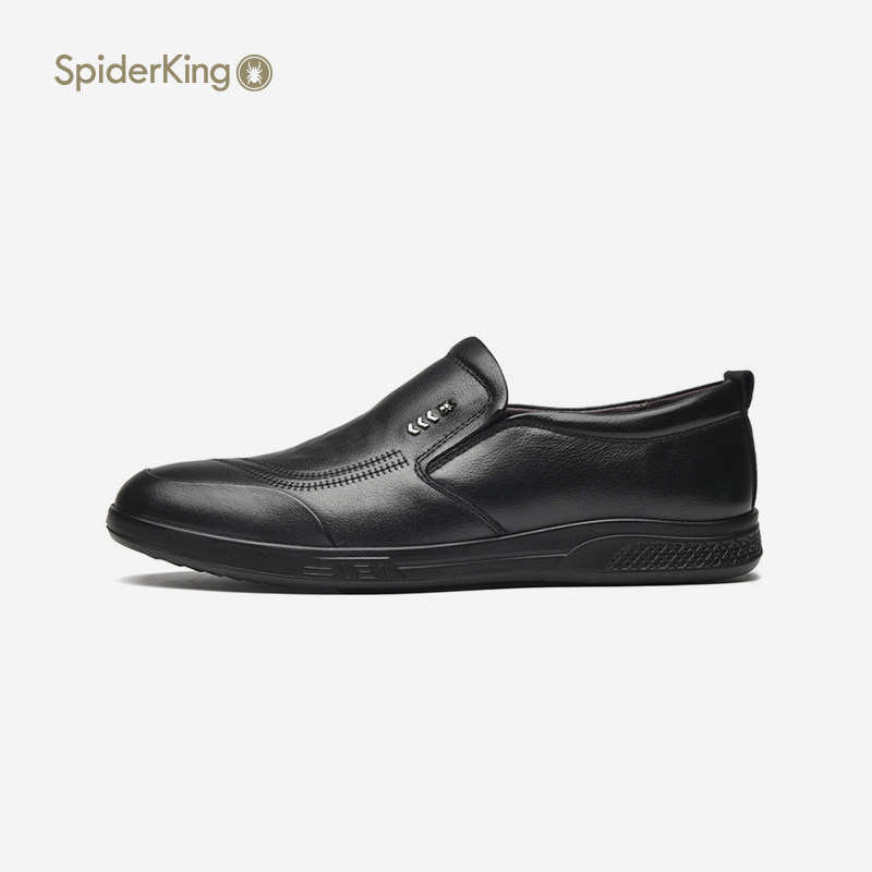 Spider King Men Shoes Spring Summer New Casual Leather Shoes Genuine Leather Soft Underside Single Shoes Low Bunch Shoes Dad Shoes