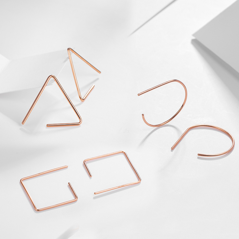 Clear Jewelry 18K Gold Ear Needle Color Gold Minimalist Geometric Line Earpin Square Personality Ear Ring CSH0093