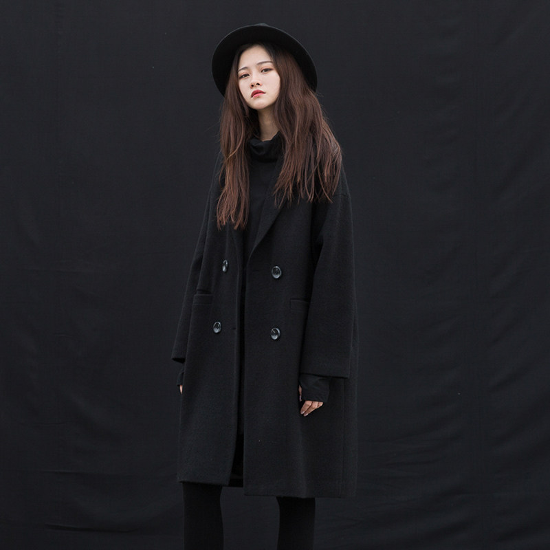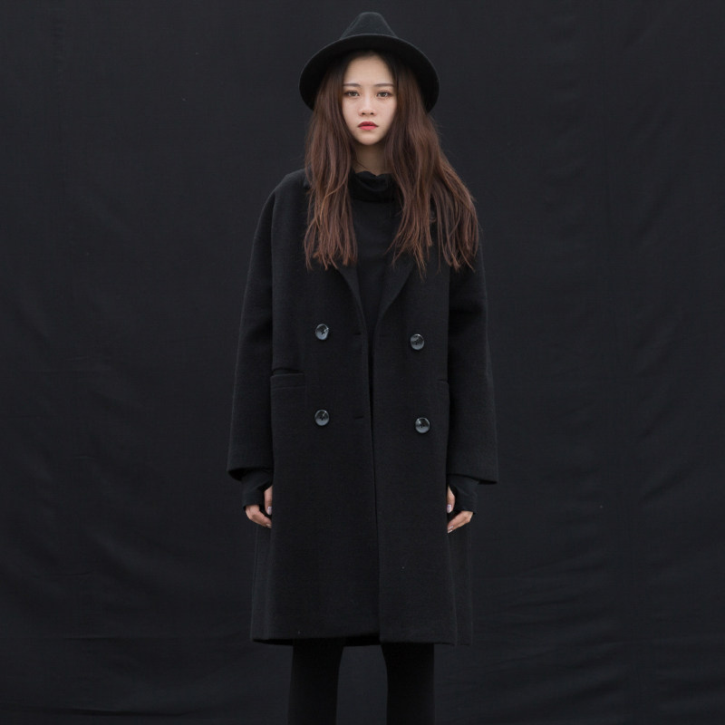 SUIN2021 autumn and winter New Black simple professional suit collar double-breasted woolen coat coat coat 8502