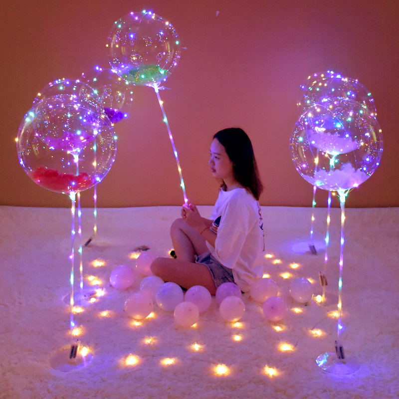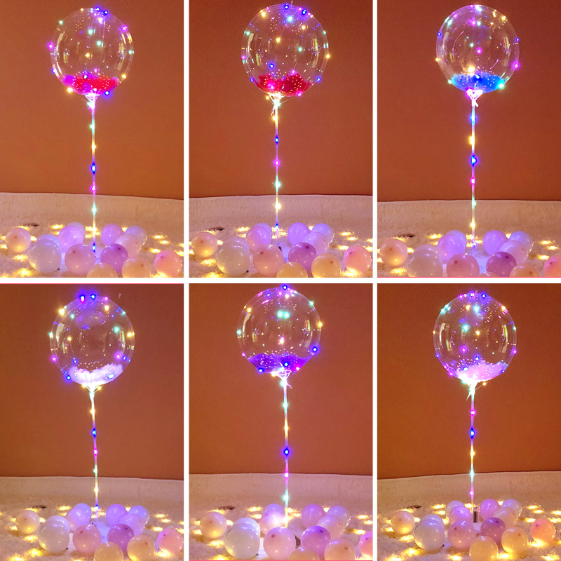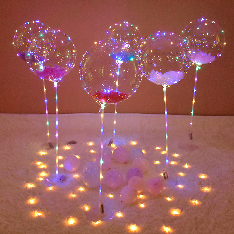ins net red transparent wave feather with lamp luminous balloon street selling children's adult birthday arrangement decorations