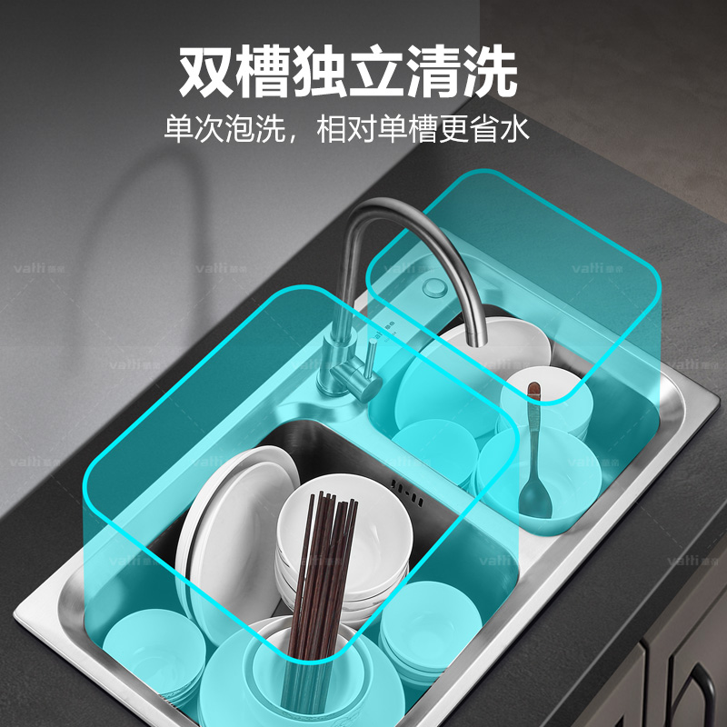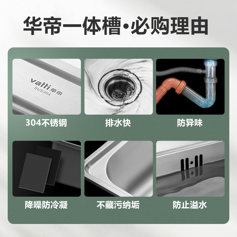 Vantage wash basin kitchen sink double sink dishwashing sink thickened 304 stainless steel large single tank integrated sink home