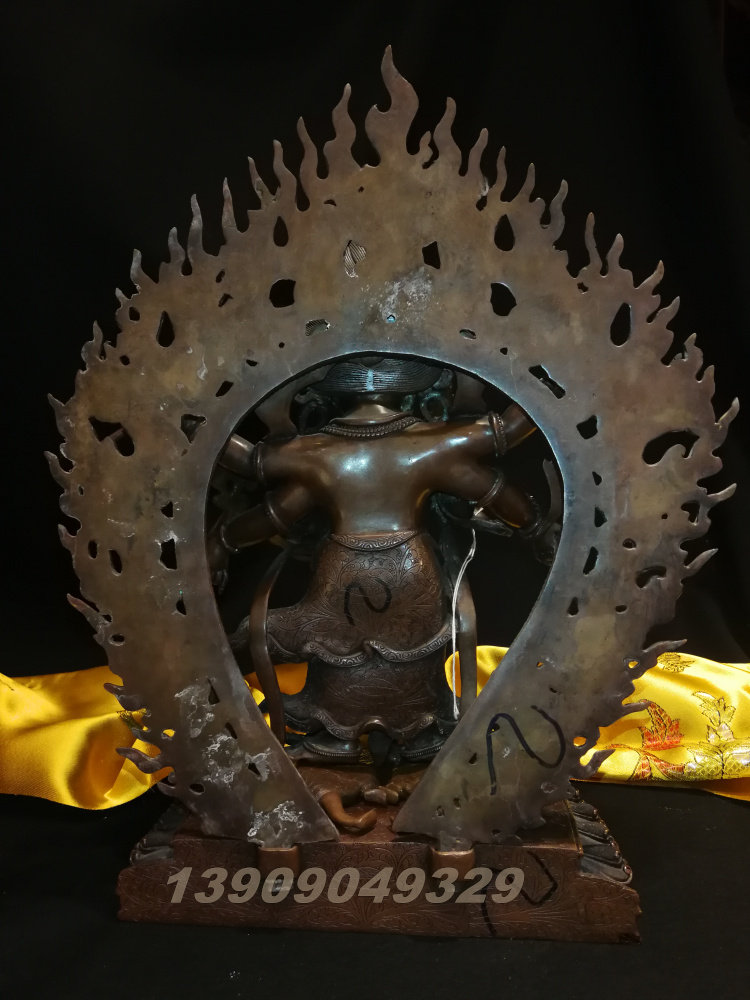 Nepal handmade Myong Buddhism Buddha 38cm boutique All-red copper boutique craftsmanship Six-arm Maha galla statue