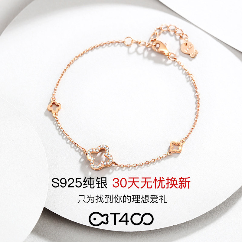 T400 four-leaf straw handmade female summer pure silver light lavish with small crowddesign temperament hand decoration birthday present to girlfriend