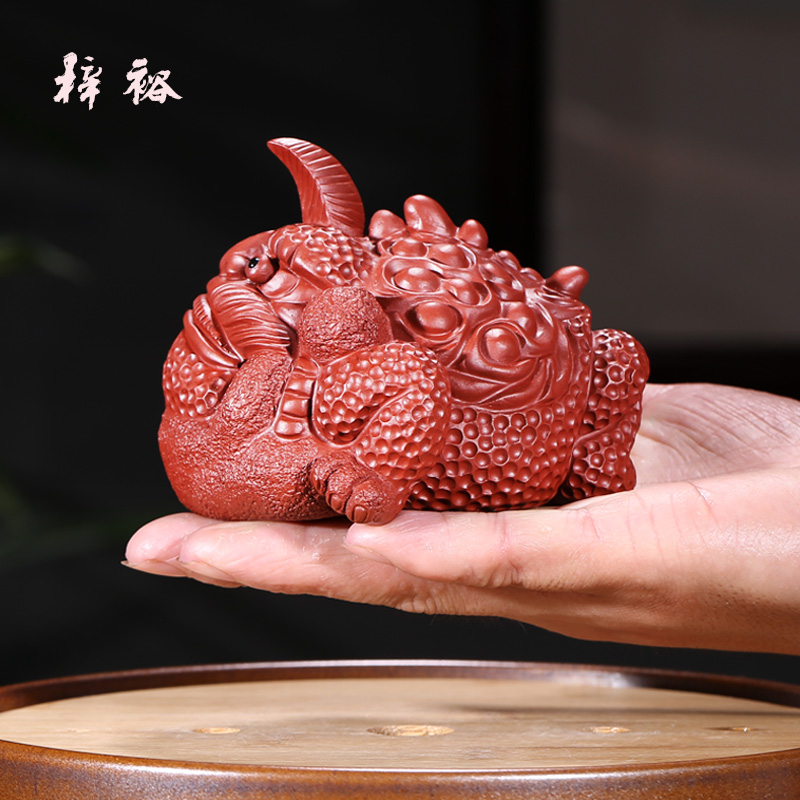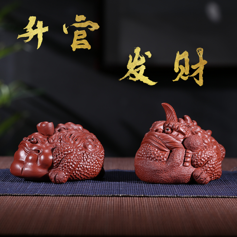 Yixing Purple Sand Tea pet Golden Toad handmade creative tea tray decoration Office decoration promotion fat fortune pair