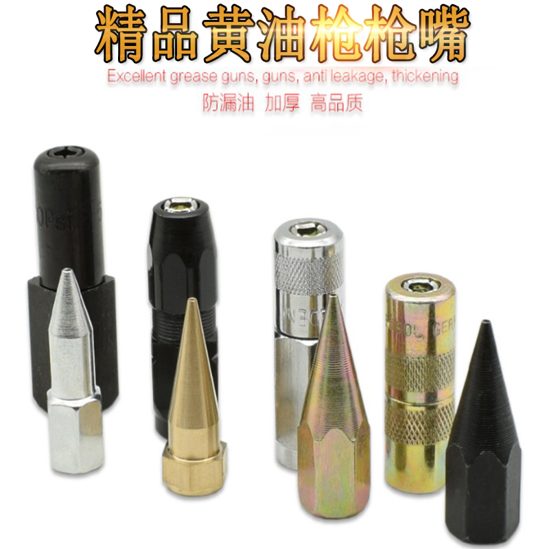 Grease gun head, flat head, pointed nozzle, oil outlet pipe, flat nozzle, pointed gun nozzle, pneumatic manual oiling gun barrel