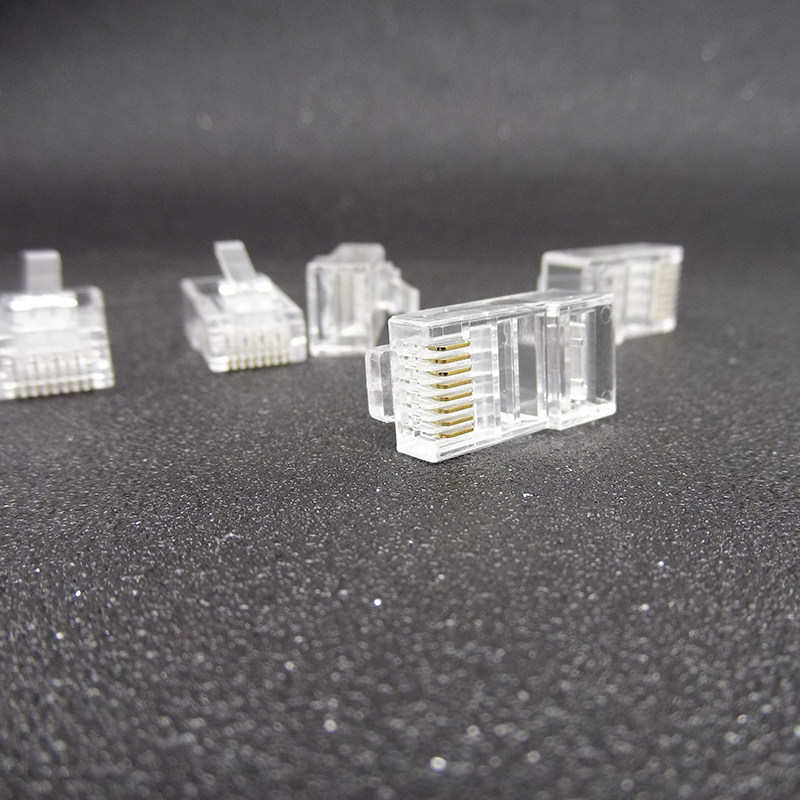 Super-six-type crystal head non-shielding RJ45 gold plated eight-core Internet wire crystal head computer integrated wiring connection head