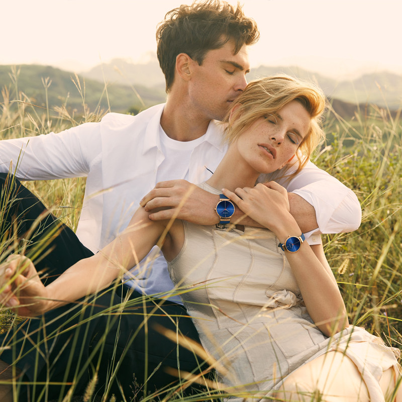 White disc rose gold woven with female meter 518874G01B white disc black woven with female meter 518874G01D blue disc rose gold woven with female meter 618874G05