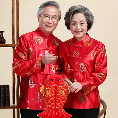 Middle-aged and elderly people festive birthday banquet Tang suit male long sleeve grandfather birthday birthday coat father dress party dress