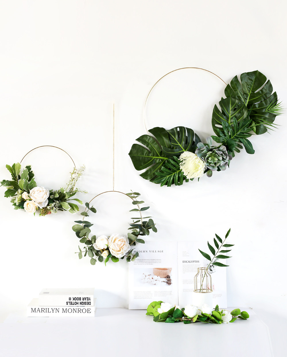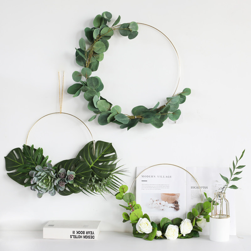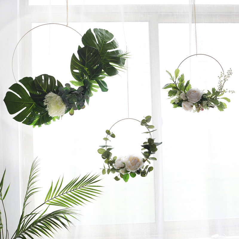 Wind Yin hanging ring Nordic pendant Wall decoration Wall hanging ins Wrought iron simulation flower suit Soft wedding wall hanging