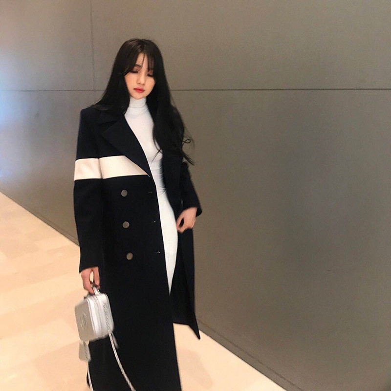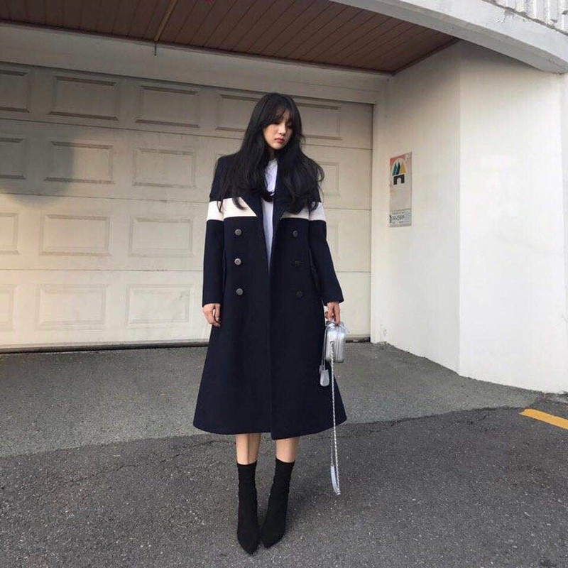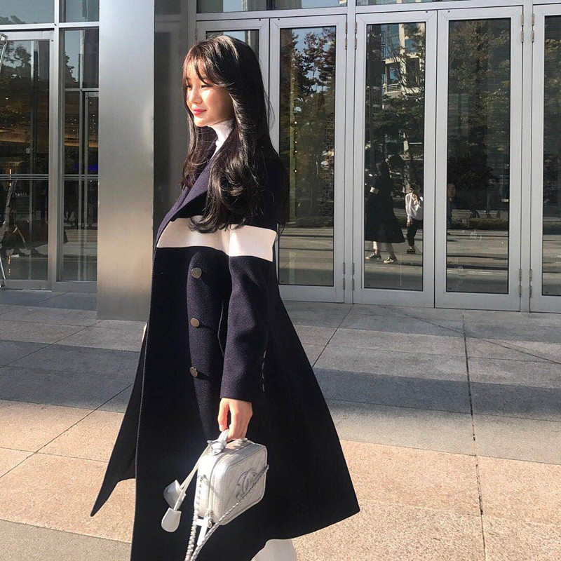 Korean girls 2023 new Korean version of autumn and winter woolen coat women's mid-length tide autumn and winter forest woolen coat