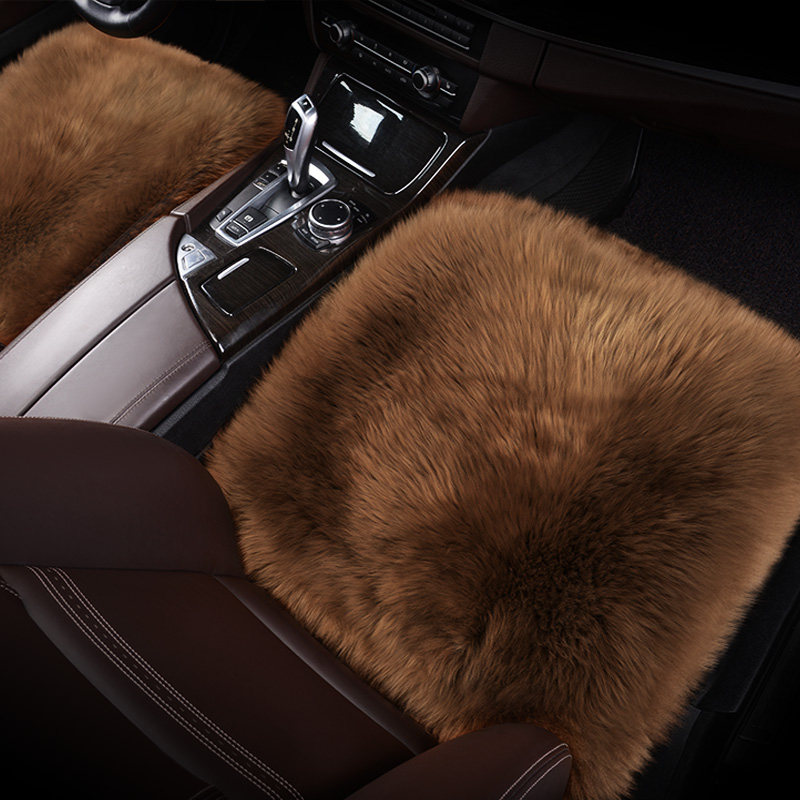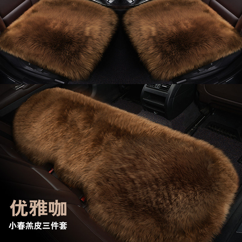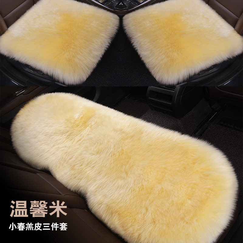 Pure Wool Car Cushion Winter Monolithically Lady long fur Three sets without backrest short plush seat cushion fur integrated