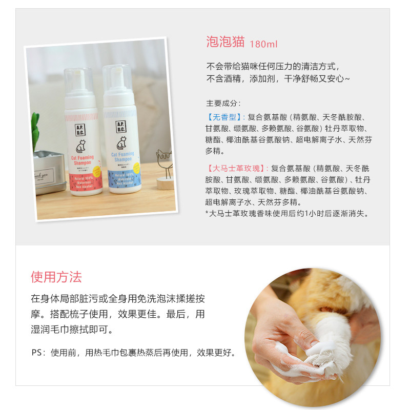 APDC dog used without washing foam APDC cat with fragrant and washable foam APDC cat with rose fragrance free of washing foam
