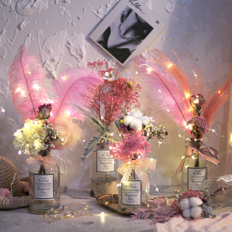 Net Red Dry Flower Bouquet Lins Pink Teenage Girl Hearts Small Vase Home Decoration Furnishing Art Little Fresher Flowers-Taobao