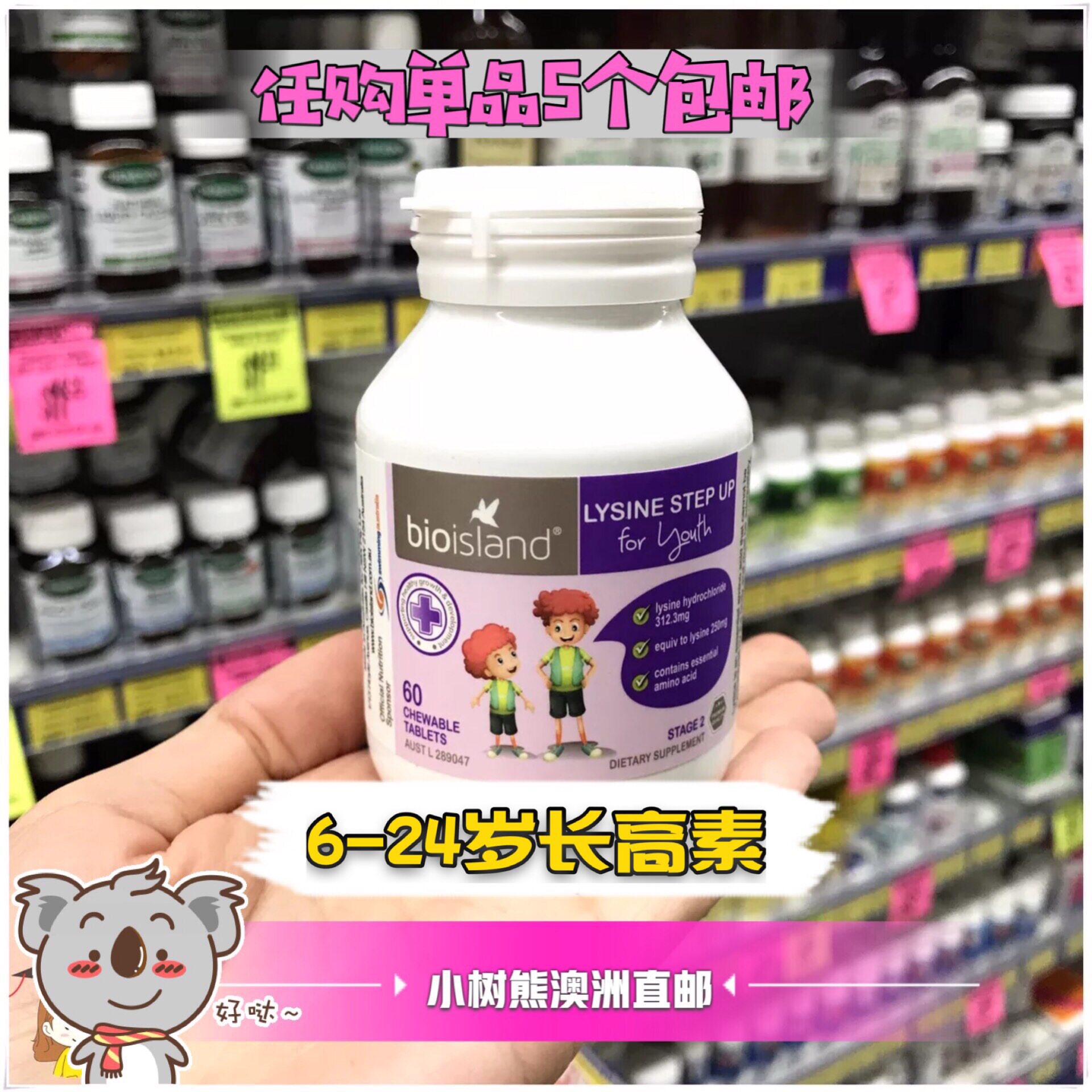 Australia's bio island lysine chewable tablets Chang Gao Su 60 capsules children and adolescents Gold Long Gao Su 2 segments