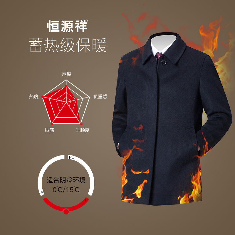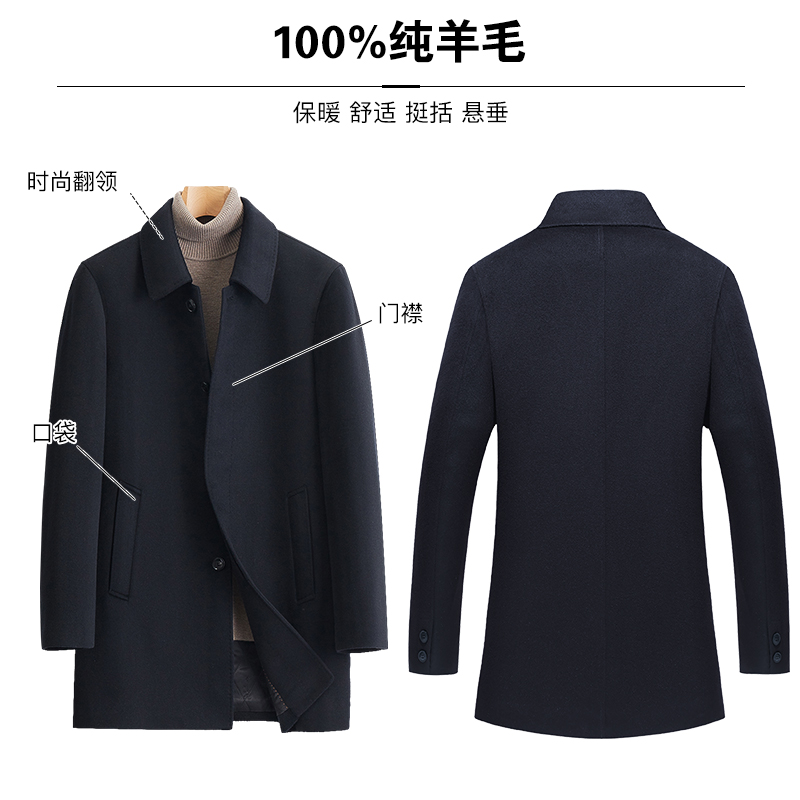 Hengyuan Xiang middle-aged Mao, the man in the middle of the great coat of clothing 2021 Winter 100 pure wool, and the father's winter clothing