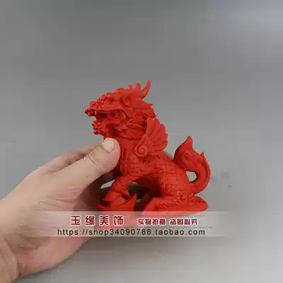 Natural cinnabar unicorn ornaments auspicious beast decoration pair price fortune 11times 10times 5cm
