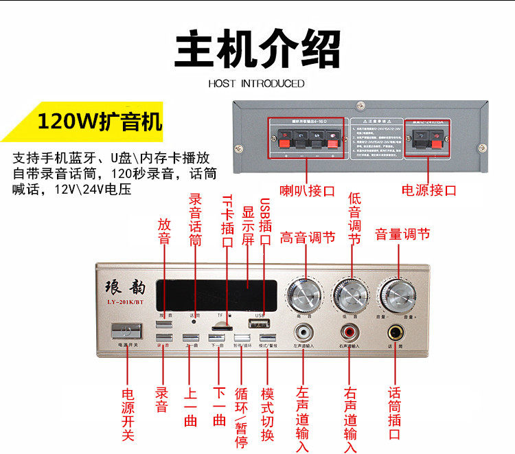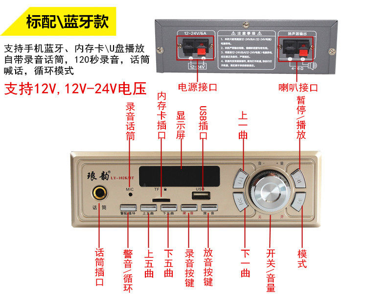 12v24v high-power car amplifier outdoor car roof publicity player set up a street stall recording and selling loudspeaker