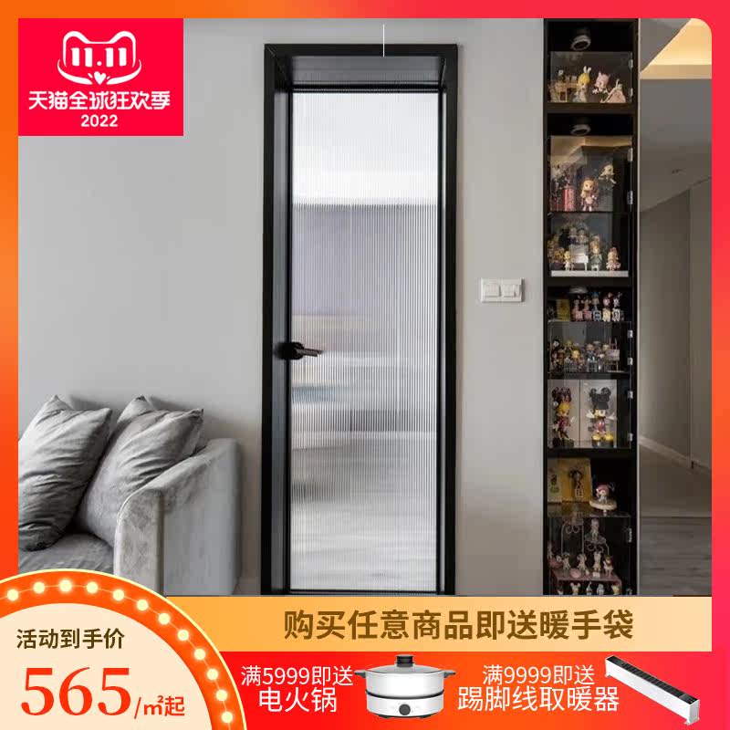 16 black narrow frame door powder room swing door glass partition titanium magnesium aluminum alloy Changhong glass Suxi Changzhou