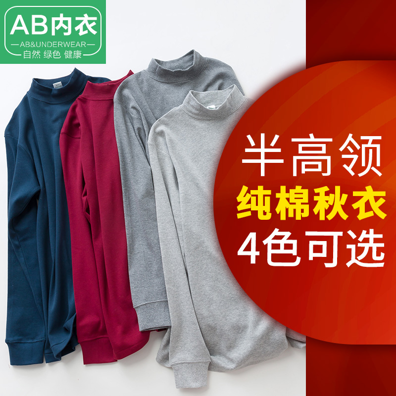 AB Underwear Middle Aged Fever Clothes Autumn Clothes Men Cotton Sweatshirt Thin Undershirt Half High Collar Pure Cotton Single Piece Blouse