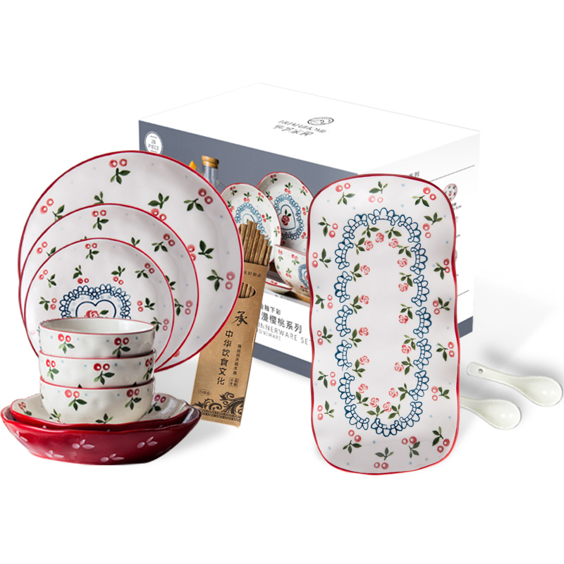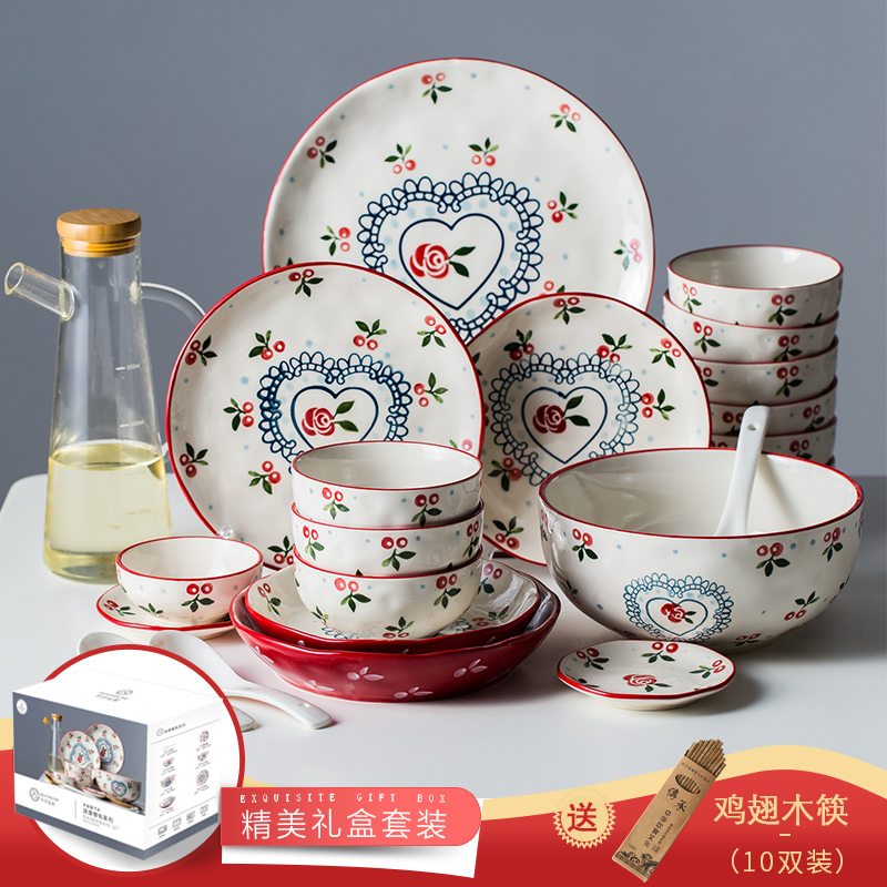Hufu Eu Style 4 People Bowls Dish Cutlery Sets Combinations Chinese Style Hand-painted Ceramic Bowls Pan Zi Home minimalist Eating Bowl