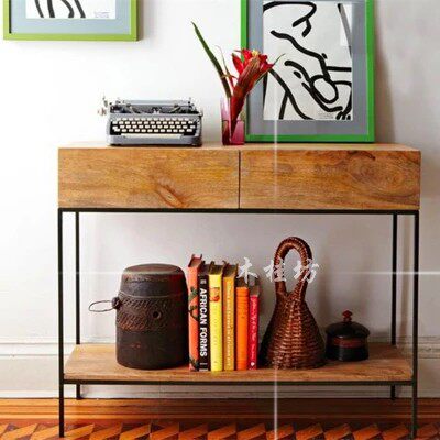 Nordic Iron Art Living Room Decoration Xuanguan Terrace Solid Wood Disposal Xuan Guan Cabinet Door Hall Landscape Containing Xuan Guan Table