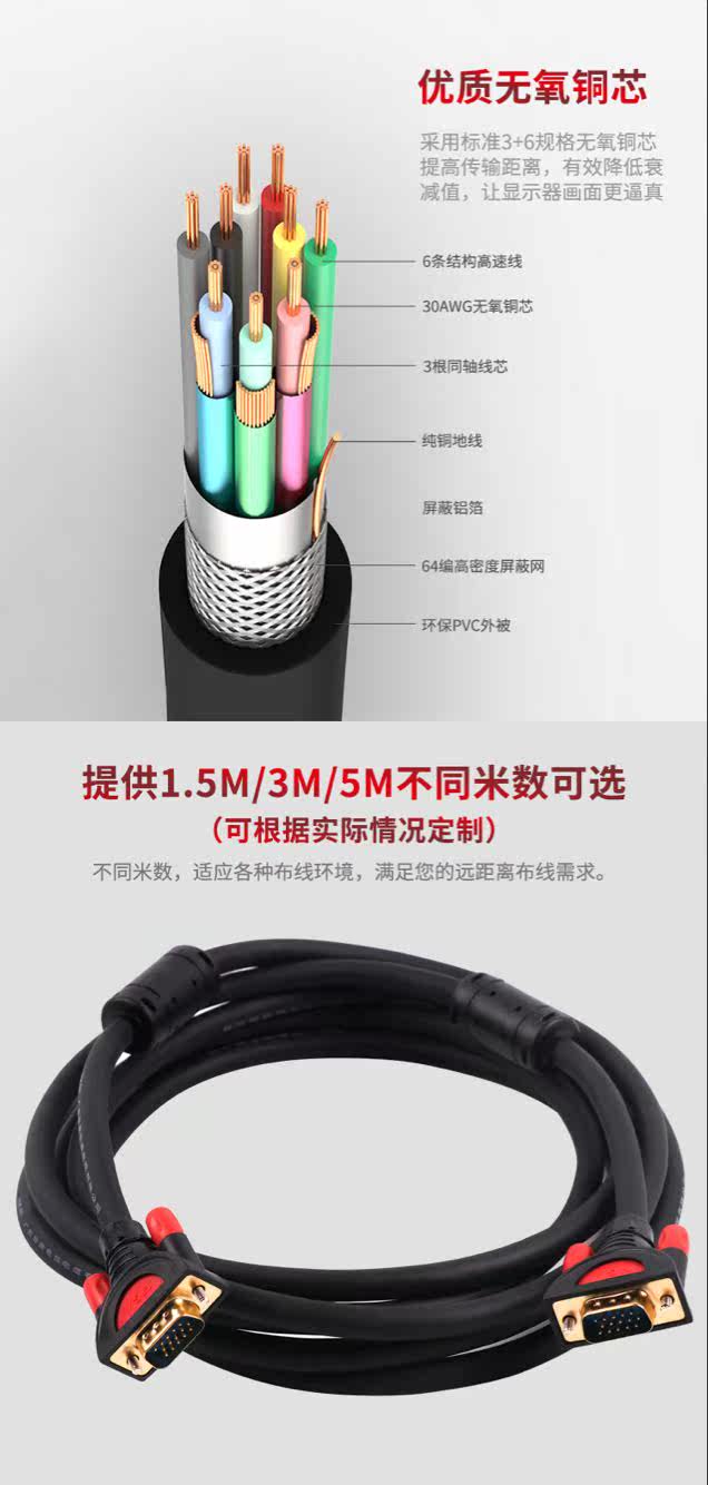 Guangdong Hai Conn 3 6VGA Line Computer screen TV projector HD connecting line VGA signal line 30 m