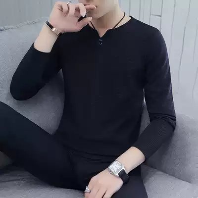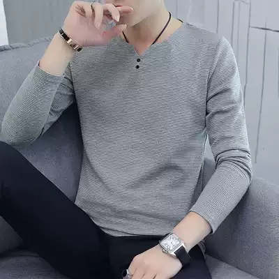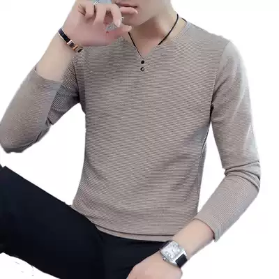 Men's long sleeve men's T-shirt autumn 2021 new men's V-collar Korean trend shirt men's autumn coat Tide brand