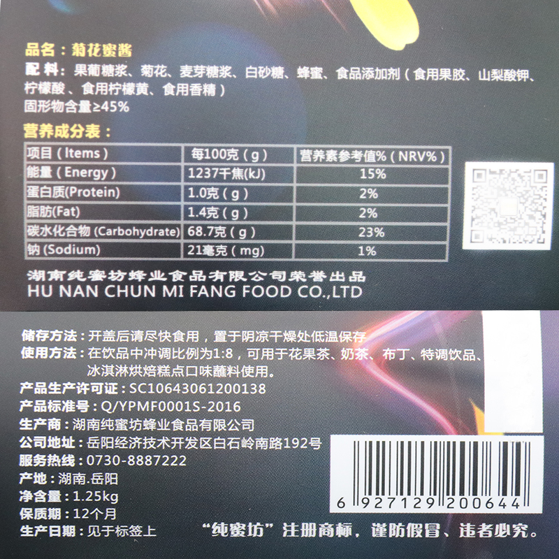 Pure Honeyworkshop Chrysanthemum Honey 1 25kg Honey Honey Flower Tea Chrysanthemum Jam Fruit Tea Raw Milk Tea Shop Exclusive-Taobao