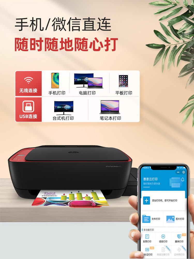 Hp HP Tank411 519 color inkjet ink warehouse type connection for wireless printer family household small printing copy scanning one photo a4 paper three-in-one student office business