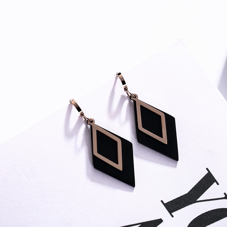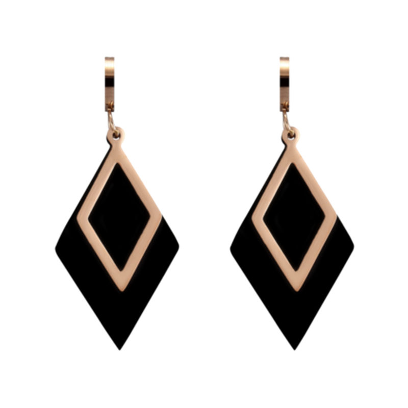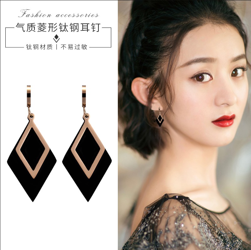 South Korea's black geometric diamond ear crash personality titanium steel earrings with simple ear nails appearing thin ear jewelry