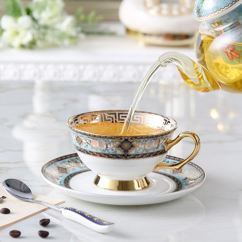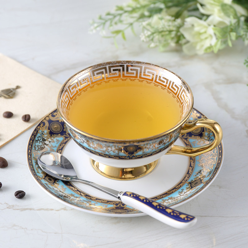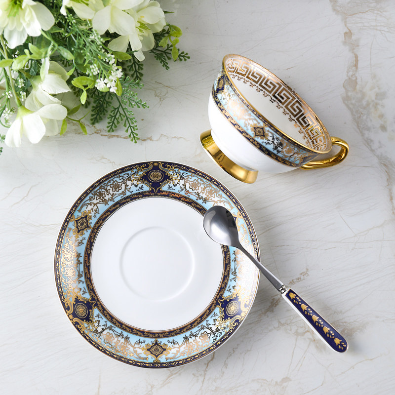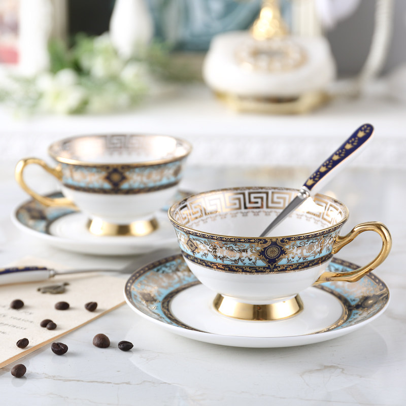 Home European-style coffee cup suit small extravagant elegant light extravagant single with spoon cover with cup disc combined ceramic bone porcelain