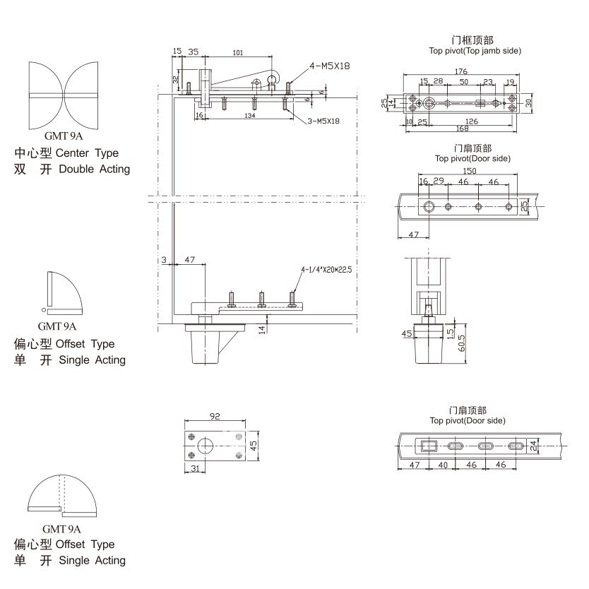 GMT ground shaft 9A central hinge 9A non-automatic hinge wooden door hinge with frame door hinge 120KG