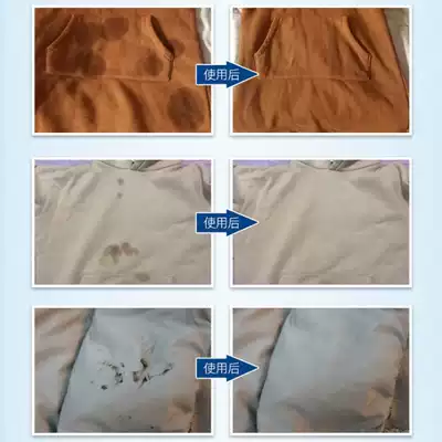 Grease cleaning agent on colored clothes jeans with oil stains, oil washing point, children's pants degreasing stain artifact