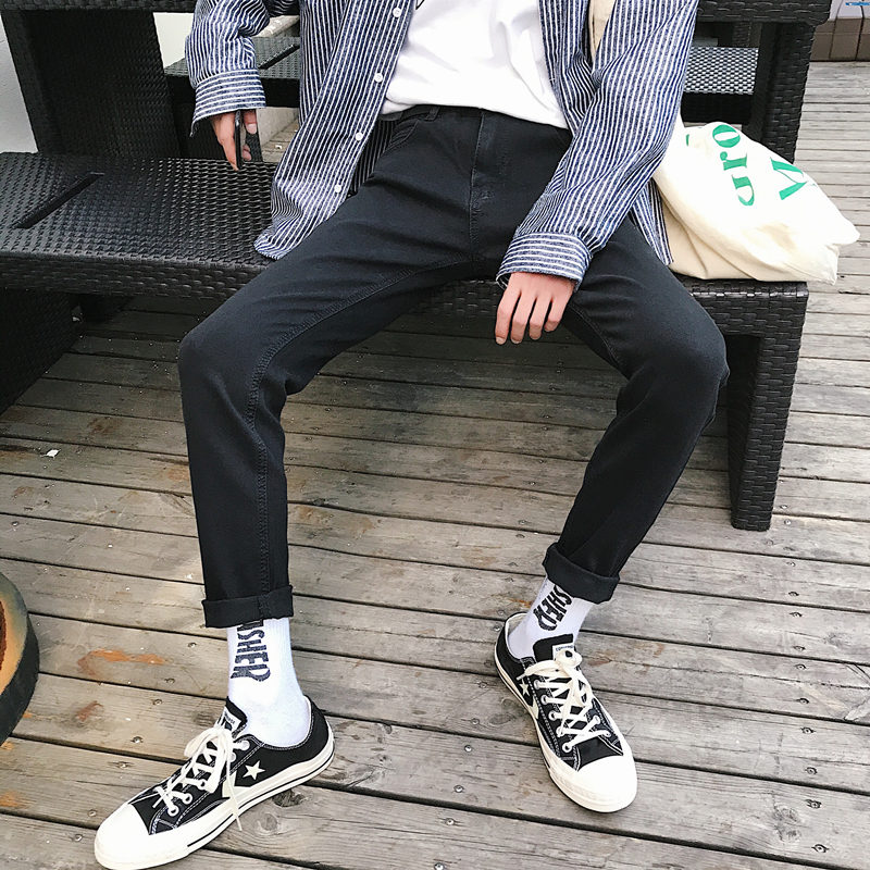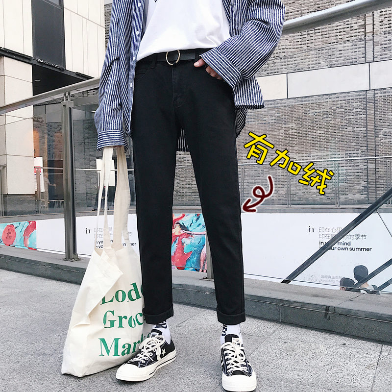 Black Jeans Men's Spring Autumn Season Students Sashimi 90% Pants Harbor Wind Chic Pants Korean Version Trend Casual Long Pants