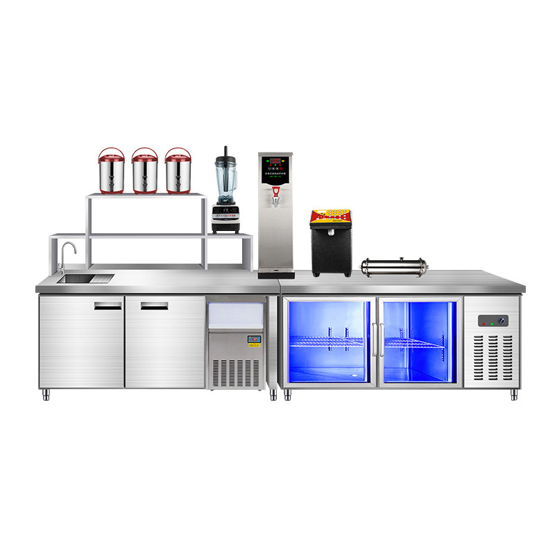 Please Drink Milk Tea Shop Equipment Full Set Entrepreneurship Type Drinks Store Equipment Special Customized Stainless Steel Refrigerated Operation Table