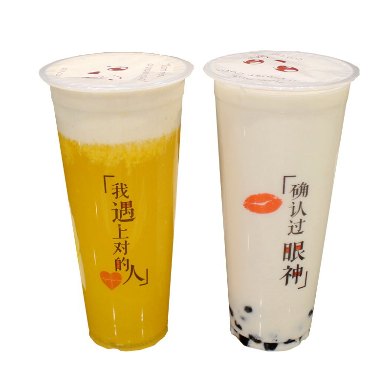 Net red milk tea cup disposable with lid 90 caliber 700ml500 plastic cup cold drink juice packaging cup customization
