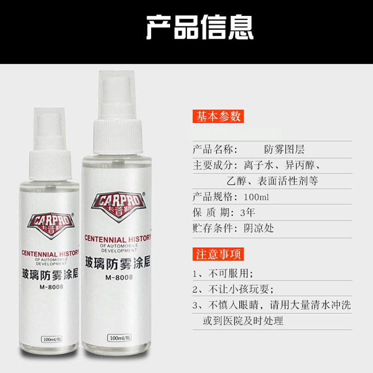 Anti-fogging 100ml (for the inside of the lenses) Rain-proof 100ml (for lenses outer layer) anti-fogging 1 bottle of rain-proof 1 bottle