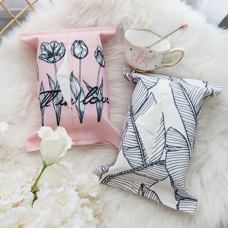 Premium gray pink ins Nordic tissue cover Plant and flower simple tissue bag tissue box Powder room removable toilet paper
