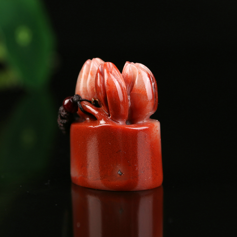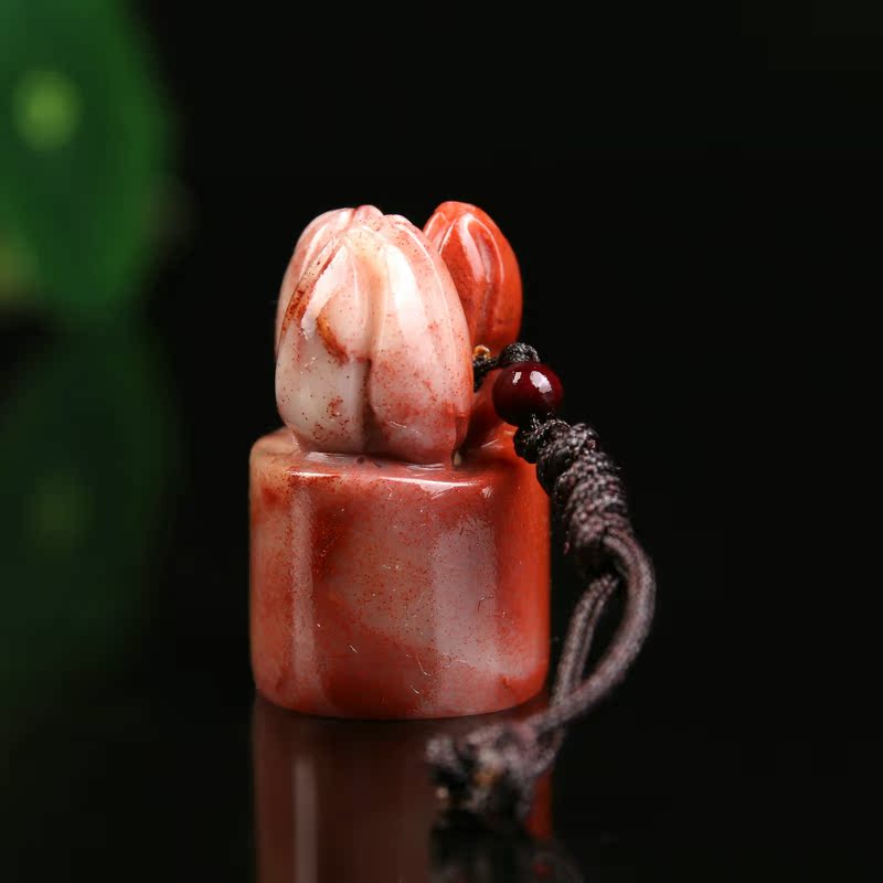 Shoushan Stone Vermilion Red High Mountain Frozen Bud Pendant Chapter Calligraphy Name Practice Lettering chapter LSJ465